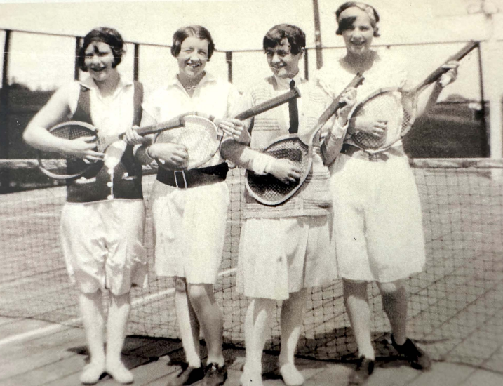 In this archival photograph, four Havergal girls radiate joy as they playfully strum their tennis racquets, dressed in classic white knee-length tennis dresses. Tennis has long been a cherished tradition at Havergal, nurturing both spirited competition and personal growth. Beyond the courts, these lighthearted moments captured creativity, camaraderie and resilience, teaching students teamwork, endurance and leadership. Their smiles reflect a timeless delight in movement and play, linking generations of Old Girls/Alums through shared memories. For more than a century, Havergal tennis has inspired passion for the sport, while fostering connection, confidence and a love of lifelong athletic pursuit.