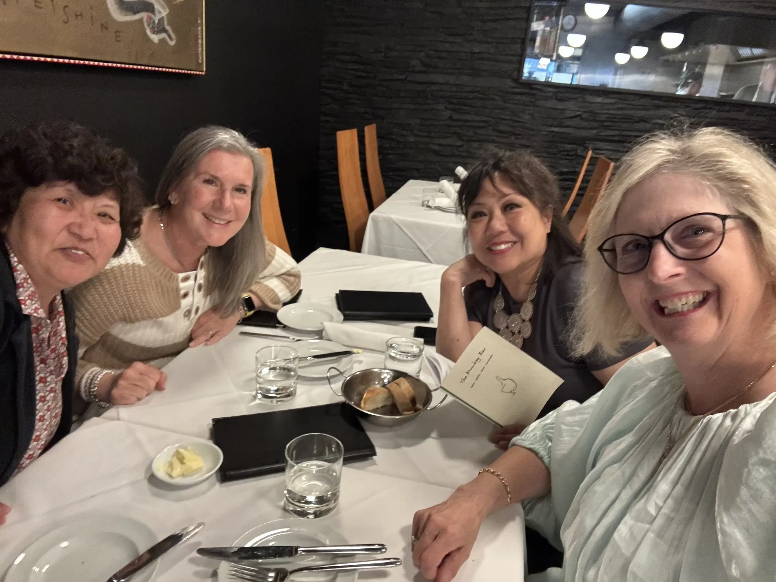 A send off for Kim MacLaurin who is starting a new journey to live in BC. Naomi Sedgwick Schafler, Pauline Chan and Sandra Carrington shared stories and experiences as we all acknowledged many life moves that will be taking place in these years.